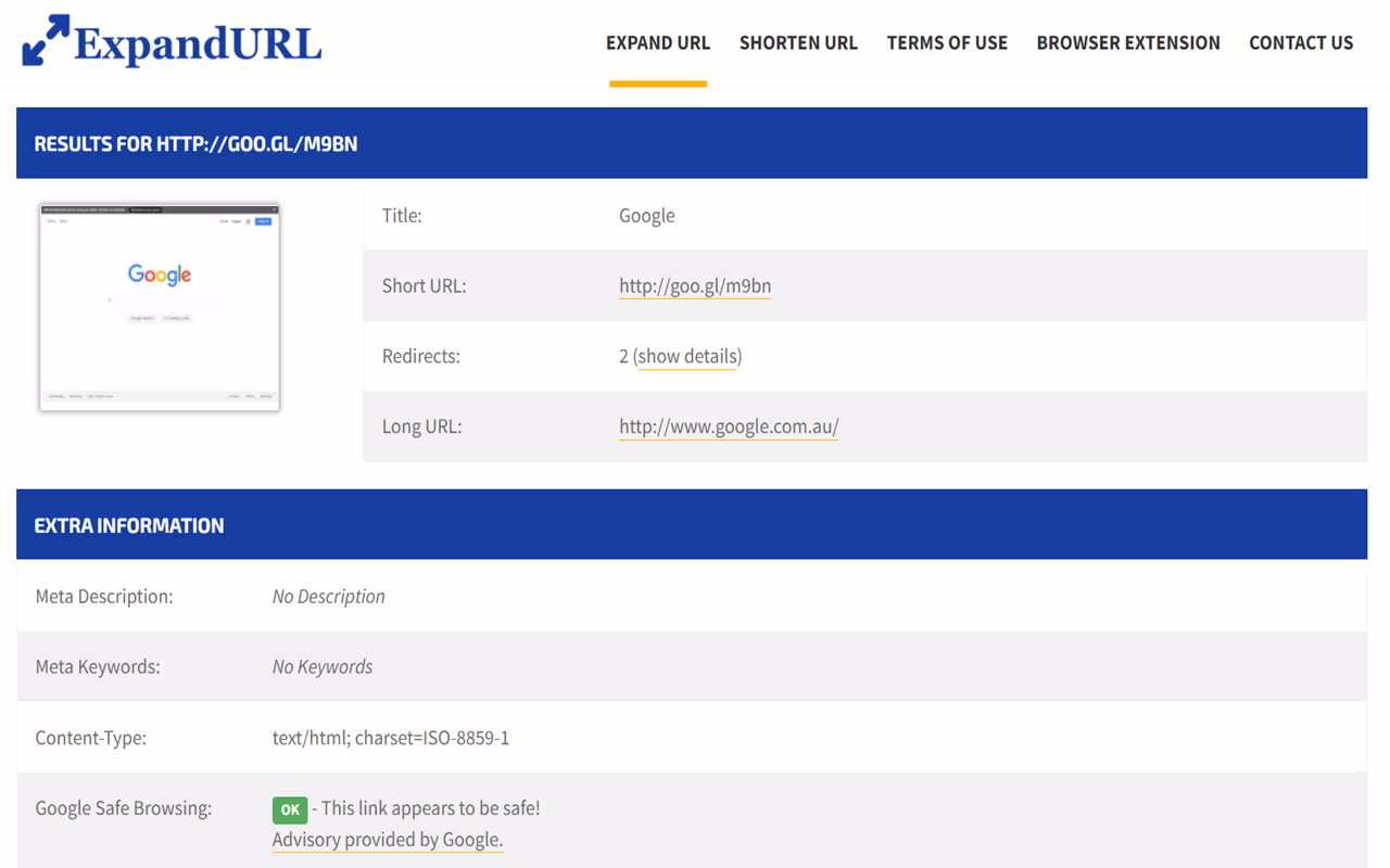 Es una web sencilla pero muy útil ya que nos permite ver la url final de un enlace acortado, permitiéndonos ver hacia donde nos redirigirá esa url sin necesidad de visitarla.