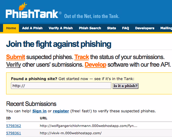 Es una web que como su nombre lo indica es un tanque de sitios desde donde se realiza phishing, lo que nos permite hacer es que si tenemos duda de una web y ya fue reportada en el sitio web nos dira si es un phishing o no, en el caso de que no nos arroje información tampoco quiere decir que es seguro, simplmente no este reportada. También nos permite poder reportar una pagina que nosotros estemos seguros que sirve para hacer phishing, aportando nuestro granito de arena a la comunidad.